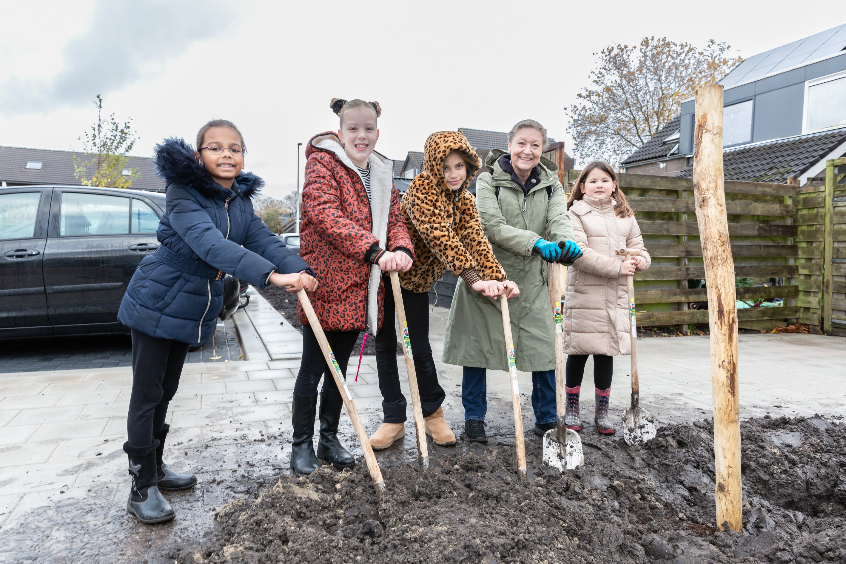Met heel veel enthousiasme en niet bang voor een beetje regen zijn er meerdere bomen geplant.