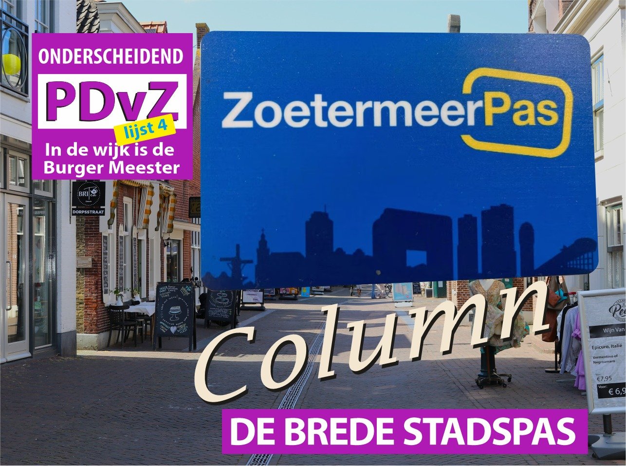 Het succes van de stadspas valt of staat met het aanbod. Zonder een aantrekkelijk en regionaal gedragen pakket aan kortingen en activiteiten verliest de pas al snel haar meerwaarde. De PDvZ roept het college op om hier goed in te blijven investeren, samen met lokale ondernemers.