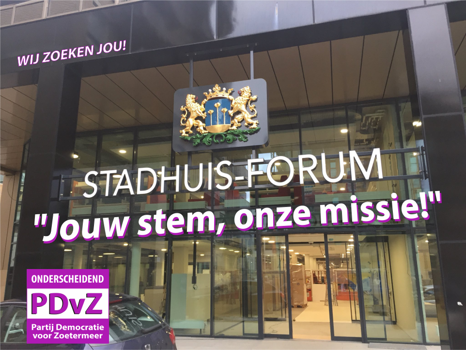 Partij Democratie voor Zoetermeer (PDvZ) is op zoek naar gedreven kandidaten die willen meebouwen aan een samenleving waarin een aantrekkelijke woon- en leefstad, veiligheid, géén tolerantiebeleid en statushouders geen recht op voorrang krijgen bij huisvesting centraal staan. Of je nu ervaren bent in de politiek of een frisse blik meebrengt, jouw enthousiasme en inzet zijn wat telt.