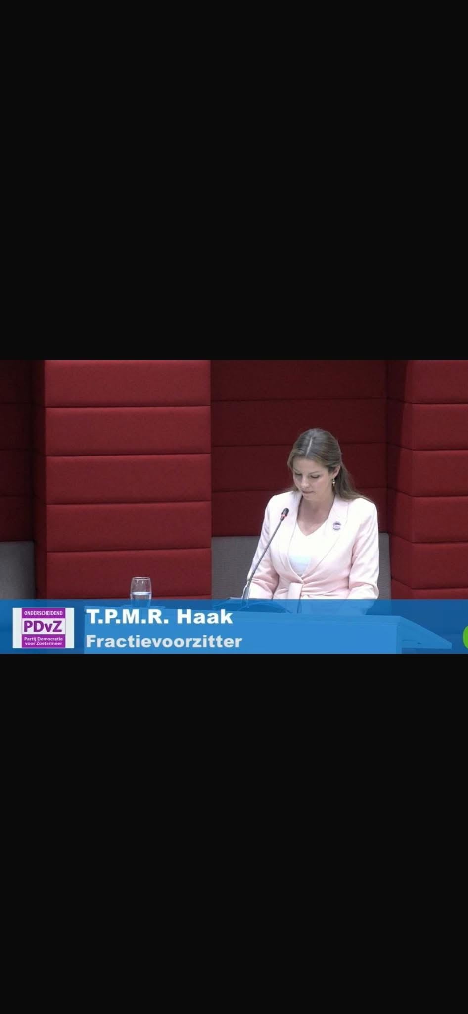 Tamara Haak, fractieleider van de PDvZ sprak gisteren in de gemeenteraad naar aanleiding van het rapport van de verkenner van de PVV.